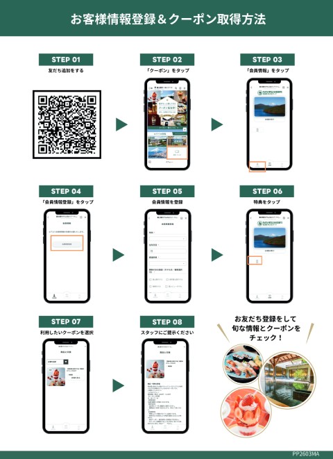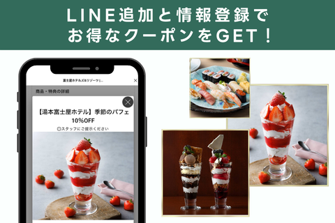 お得なクーポンがご利用いただけるほか、富士屋ホテルズ&リゾーツの各施設からのお知らせなど、富士屋ホテルズ&リゾーツの魅力をより身近にお届けいたします。ぜひお友だちにご登録ください。